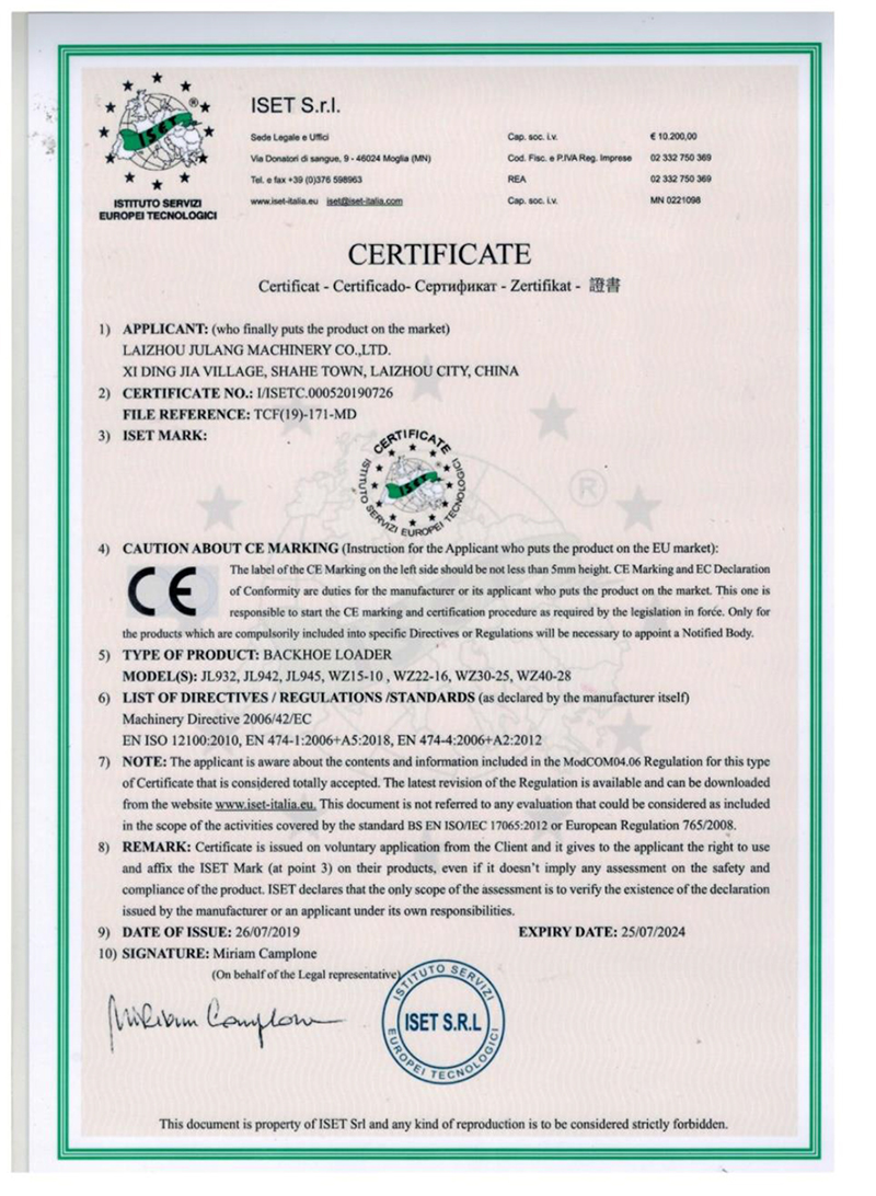• 取得“多功效鏟車抓掉挖一體機”專利證書,起頭出產兩端忙,攪拌斗裝載機,同年改名萊州巨浪機器無限公司